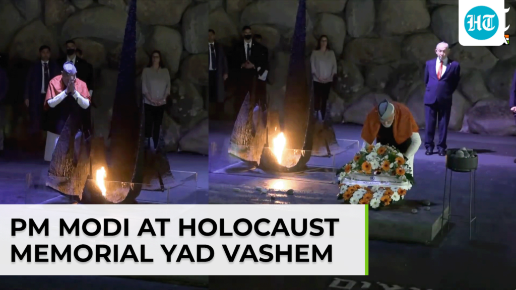 Prime Minister Narendra Modi visited Yad Vashem, Israel’s World Holocaust Remembrance Centre, during the second day of his official trip to Israel. Accompanied by Israeli Prime Minister Benjamin Netanyahu and Yad Vashem Chairman Dani Dayan, the visit marked a solemn and symbolic moment in India–Israel relations. PM Modi paid homage to the six million Jews who perished in the Holocaust and laid a wreath at the memorial, reaffirming India’s commitment to remembering the victims of one of history’s darkest chapters. Chairman Dani Dayan personally led the delegation through the memorial complex, highlighting the historical significance and educational mission of the institution. Established in 1953, Yad Vashem stands as Israel’s official memorial to the Jewish victims of Nazi persecution and serves as a global center for documentation, research, and remembrance. The visit underlined the shared values of humanity, remembrance, and the resolve to combat hatred and extremism. It also reflected the deepening strategic and moral partnership between India and Israel.