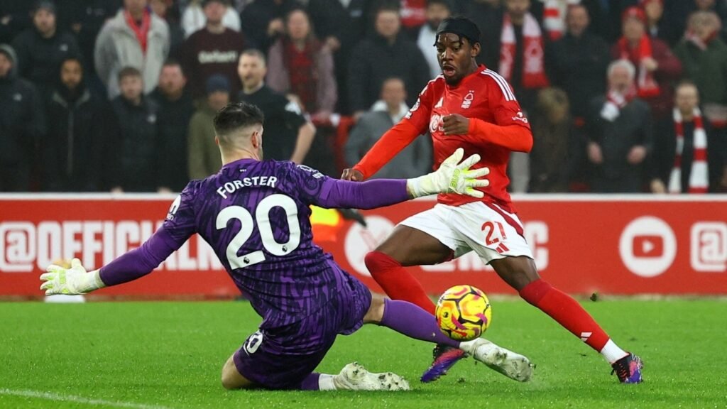 When Tottenham lost possession on the edge of the Forest area, the ball was played to Morgan Gibbs-White who split the visiting defense with a superb pass and Elanga beat goalkeeper Fraser Forster with a deft finish.