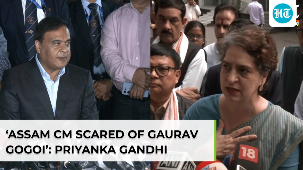 Congress leader Priyanka Gandhi Vadra on Friday launched a sharp attack on Himanta Biswa Sarma, accusing the Assam Chief Minister of being “rattled” by Congress MP Gaurav Gogoi amid the ongoing controversy over alleged “Pakistan links.” Speaking to reporters in Guwahati, Priyanka Gandhi said politics has “two types of leaders” — those who practice positive politics and those who rely on polarization and personal attacks. She alleged that the repeated targeting of Gogoi and his family shows nervousness on the part of the ruling side. “The way Gaurav ji and his family are being targeted proves that this kind of politics is wrong. I think the people of Assam know that the other side is rattled by him. It is like a badge of honour,” she said. She also stressed that families and children should not be dragged into political battles. The remarks come after Sarma alleged that Gogoi and his wife had links with Pakistani national Ali Tauqeer Sheikh and announced that evidence had been handed over to central agencies, with a Special Investigation Team probe underway. Priyanka countered that the state government should focus on jobs, youth welfare and corruption issues instead of personal attacks.