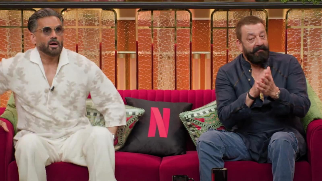 Bollywood actors Suniel Shetty and Sanjay Dutt are all set to grace the couch of kapil Sharma’s the great Indian kapil show. A new promo from the show captures sanjay having a hilaous exchange with a fan, and viewers can’t see seem to get enough of it.
