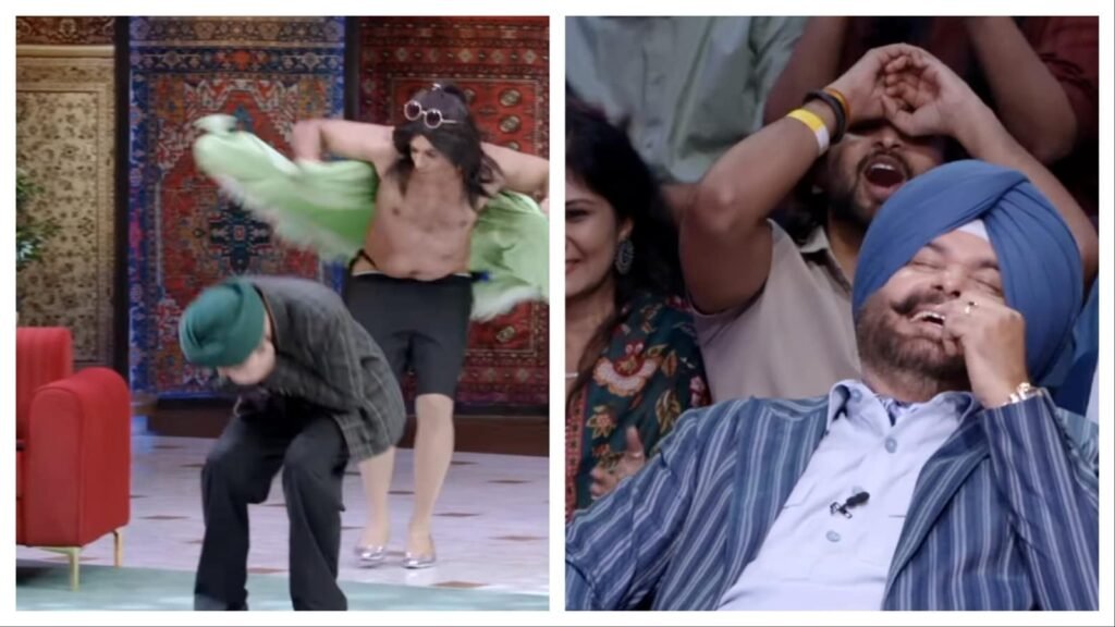 Manjot Quickly Put His Face in Between His Hands, Feeling Embarrassed at what just happy. Janhvi and Sidharth Looked Shocked while Kapil and Navjot Cackled at Sunil’s Antics. The comedian put the towel over his head and quickly ran behind stage.