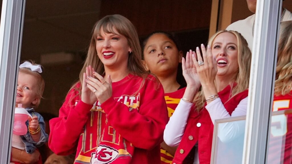 Chiefs quarterback Patrick Mahomes’ wife, Brittany Mahomes, who is Swift’s WAG bestie, also congratulated the couple on announcement,