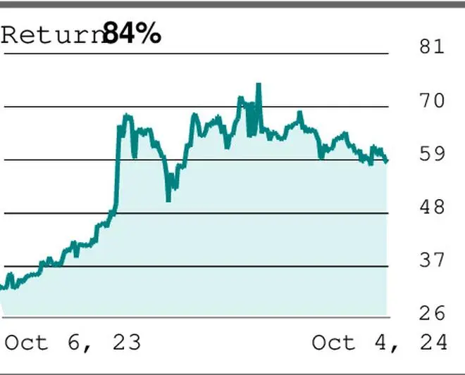 You can accumulate at ₹55. Keep a stop-loss at ₹46. Move the stop-loss up to ₹72 when the price moves above ₹82. Revise the stop-loss further up to ₹85 when the price touches ₹93. Exit the stock at ₹98. Please note that you may need to wait patiently for the above-mentioned rally to materialise.